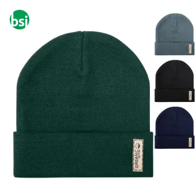 Cappellino invernale in cotone organico, ideale per team building ed eventi aziendali. Comfort e stile sostenibile per ogni occasione.