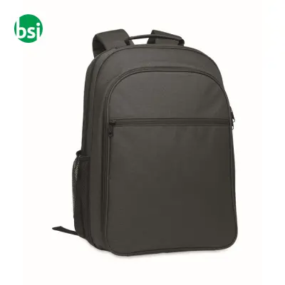 Zaino refrigerante in RPET, ideale per il lavoro e il tempo libero. Spazio per laptop, tasche strategiche e personalizzabile. Leggero e pratico!