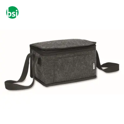 Borsa termica in feltro RPET, capacità 5L, con tasca e isolamento in alluminio. Dimensioni compatte e personalizzabile, perfetta per ogni occasione.