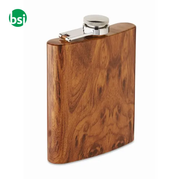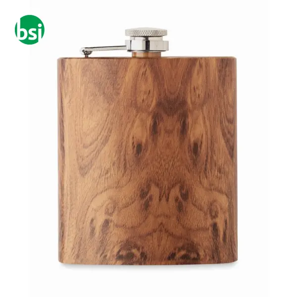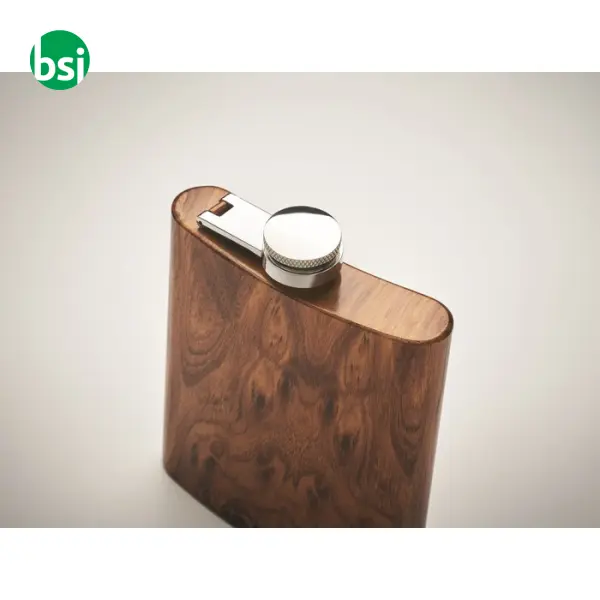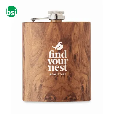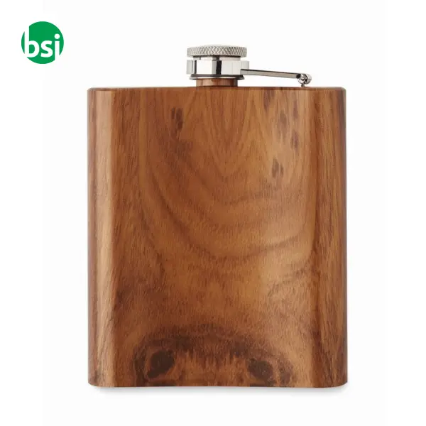 La Fiaschetta Sottile 190 ml - NAMIB FLASK è l'accessorio perfetto per chi cerca un equilibrio tra stile e praticità. Realizzata in acciaio inox riciclato, con un elegante aspetto in legno, questa fiaschetta non è solo un oggetto utile per trasportare le tue bevande preferite, ma anche un esempio di sostenibilità. Con una capacità di 190 ml e un peso di soli 115 grammi, è facile da portare con sé in ogni occasione. La personalizzazione è semplice e versatile, grazie a diverse tecniche di stampa, per rendere unica la tua fiaschetta. Scopri come questo prodotto può migliorare le tue avventure quotidiane!