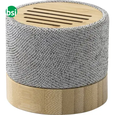 Speaker wireless in bamboo personalizzabile, compatibile 5.0, con batteria 300 mAh. Design eco-friendly e confezione regalo inclusa.