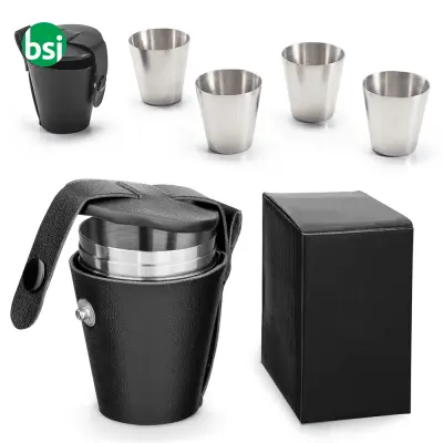 Il Set di 4 bicchieri HIMALAYAS è l'ideale per chi cerca eleganza e praticità. Realizzati in acciaio inossidabile, questi bicchieri offrono una capacità di 25 mL, perfetta per bevande calde o fredde. La borsa per il trasporto in PU facilita gli spostamenti, rendendoli l'accessorio perfetto per viaggi, picnic e feste all'aperto. Grazie alla confezione regalo, sono anche un'ottima idea regalo. Il design cromato e le opzioni di personalizzazione, tramite incisione laser e stampa tampografica, aggiungono un tocco unico e personale a ciascun bicchiere, rendendoli perfetti per eventi aziendali o celebrazioni speciali.