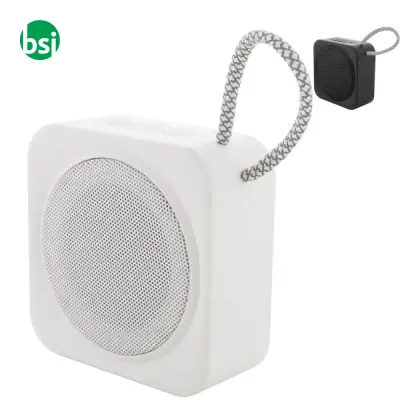 Cassa wireless in ABS riciclato, ideale per eventi e viaggi. Riproduci musica in modo sostenibile ovunque, con batteria ricaricabile e micro SD.