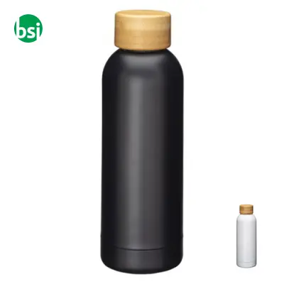 Bottiglia termica 500ml in acciaio inox, doppia parete, ideale per bevande calde e fredde. Colori disponibili: Nero e Bianco. Personalizzabile!