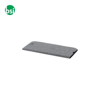 Il tappetino mouse con caricatore wireless CHAPATI è la soluzione ideale per chi cerca praticità e innovazione. Realizzato in poliestere PET riciclato, questo accessorio versatile non solo offre un'area di lavoro ottimale, ma integra anche un potente caricatore wireless da 10W, consentendoti di ricaricare il tuo smartphone in modo semplice e veloce. Grazie alla funzione di supporto integrato per il cellulare, avrai un'esperienza d'uso ancora più comoda e funzionale. Aggiungendo un tocco ecologico al tuo ufficio o al tuo spazio di lavoro, questo tappetino unisce estetica e sostenibilità in un unico prodotto.