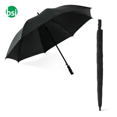 Ombrello golf antivento in pongee, ideale per il campo, con asta in fibra di vetro e apertura automatica. Personalizzabile per eventi e brand.