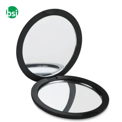 Specchietto doppio elegante e pratico, ideale per trucchi e ritocchi on-the-go. Leggero e personalizzabile, perfetto per eventi e regali.