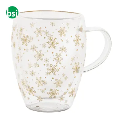 Tazza in borosilicato con design natalizio, perfetta per tè e caffè. Sostenibile e personalizzabile, ideale per regali e eventi.