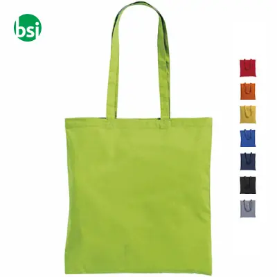 Borsa pieghevole in cotone 100%, leggera e pratica per shopping o eventi. Personalizzabile con logo per una comunicazione efficace.