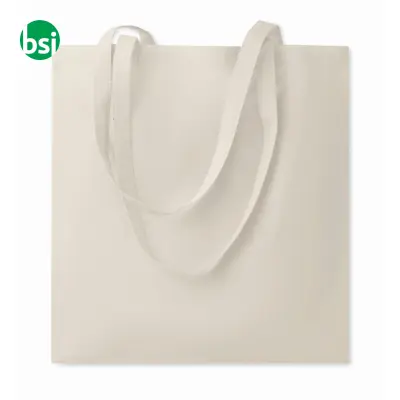Shopper in cotone biologico, ideale per promozioni ecologiche e uso quotidiano. Personalizzabile con diverse tecniche di stampa.
