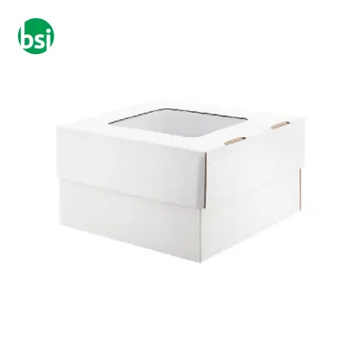 Elegante scatola regalo in cartone ondulato con finestra, perfetta per eventi speciali. Ideale per confezionare prodotti artigianali e dolci.