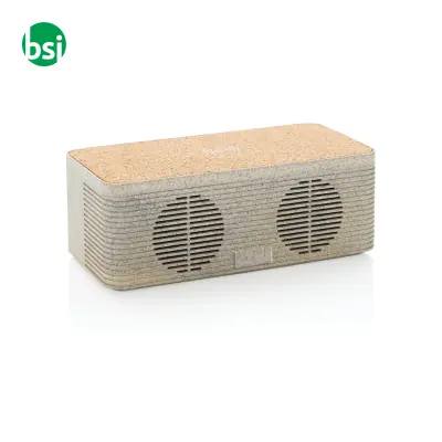 Speaker e caricatore wireless in fibra di grano: design ecologico, autonomia di 4 ore e ricarica rapida. Musica e caricamento, tutto in uno!